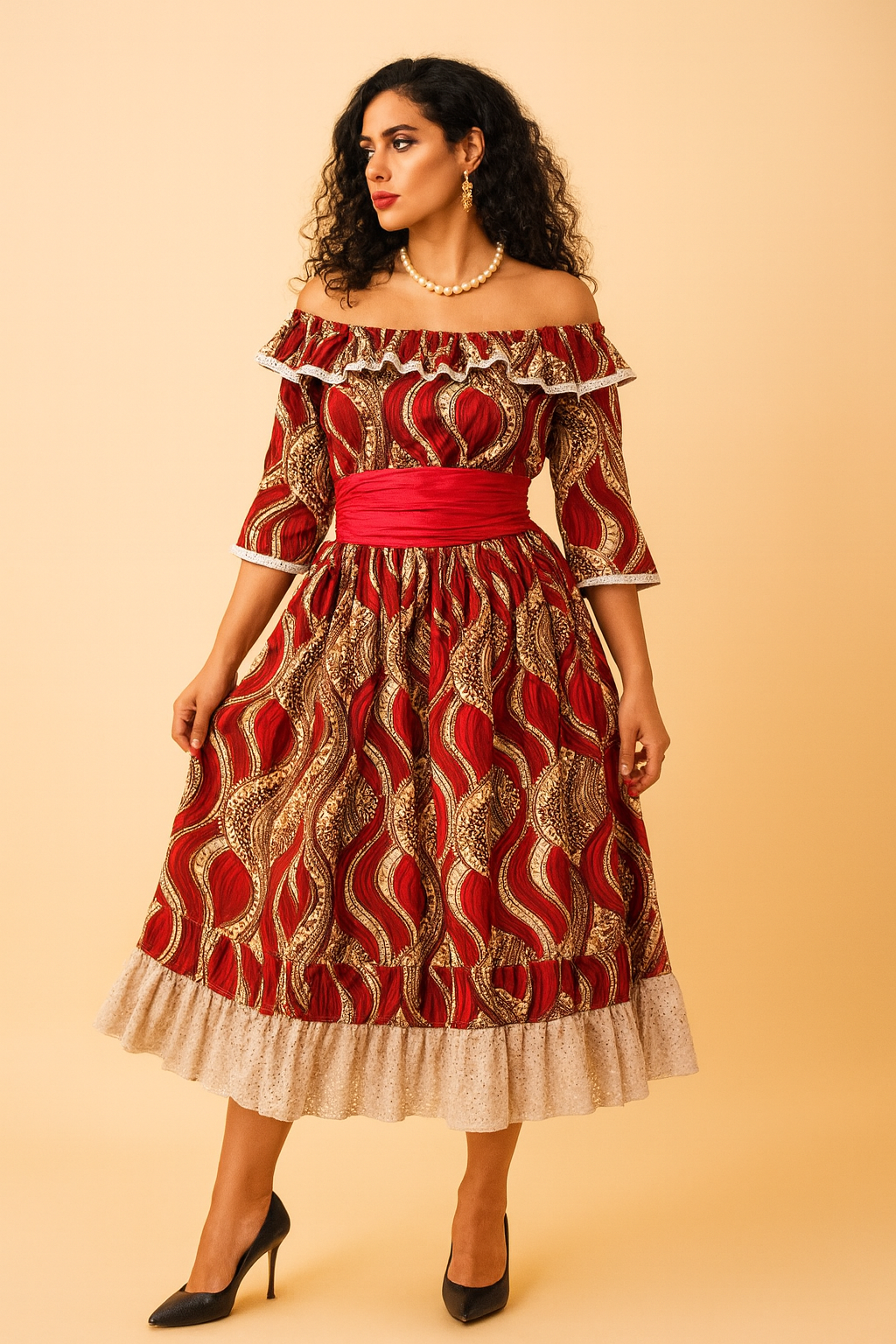 Un Haut : avec ou sans volant au niveau de l’encolure et des épaules. Des manches avec volants en tissu ou en dentelle en bas.